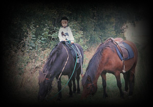 13. Sept. 1993 Mama, Odin, Gipsy und Marcel reiten zur Waldgaststätte”Erlenloch”