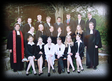 Die Konfirmanden mit Herrn Pfarrer Dally und Vikar Sven Wollert April 2004